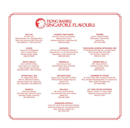 With a steadily growing presence across Metro Manila and nearby areas, Tiong Bahru Singapore Flavours continues to establish itself as a competitive player in the Philippine dining landscape driven by operational strength, evolving customer preferences, and a clear commitment to authenticity.