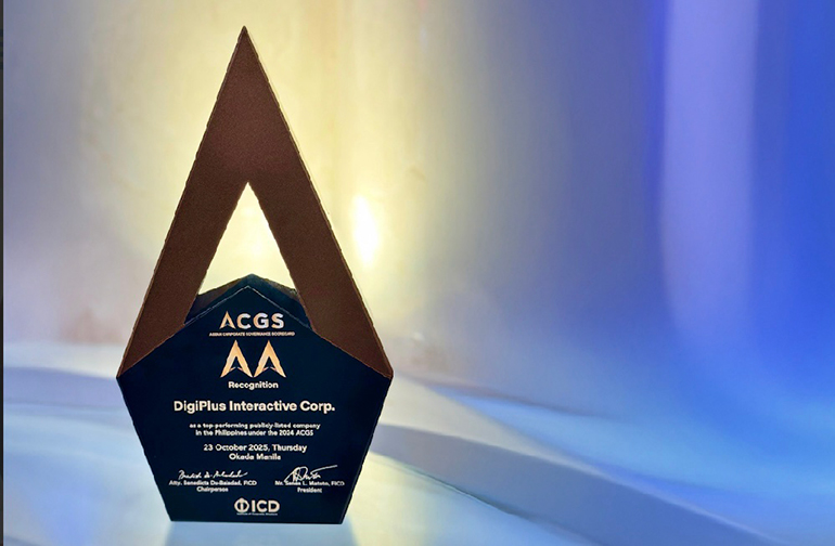 DigiPlus received a 2-Golden Arrow Award, one of the five levels of distinction granted to publicly listed companies that demonstrate outstanding corporate governance performance.