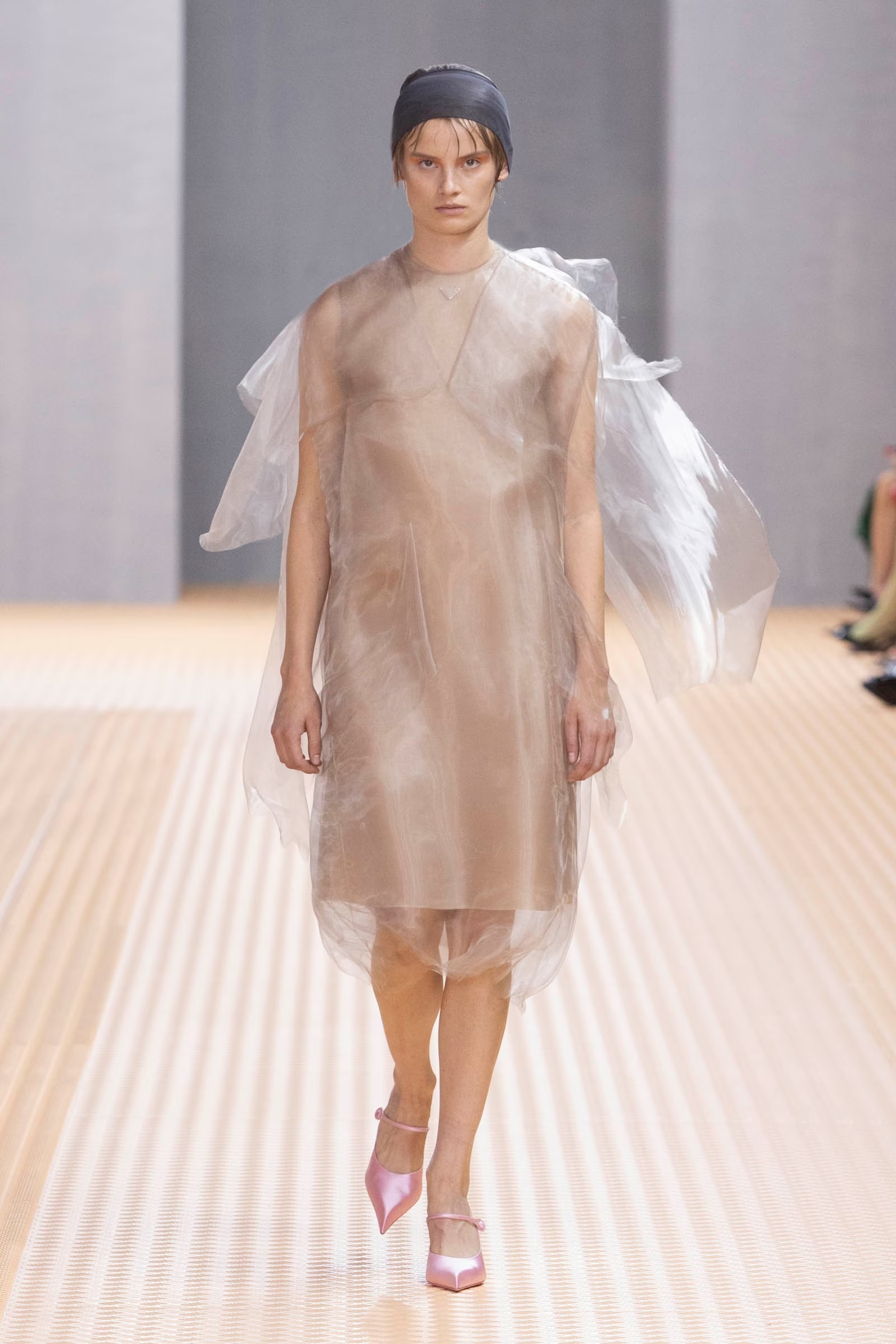 The catwalk was split in half by clear slime pouring down in the middle, a similar feature to Prada’s menswear show in June.