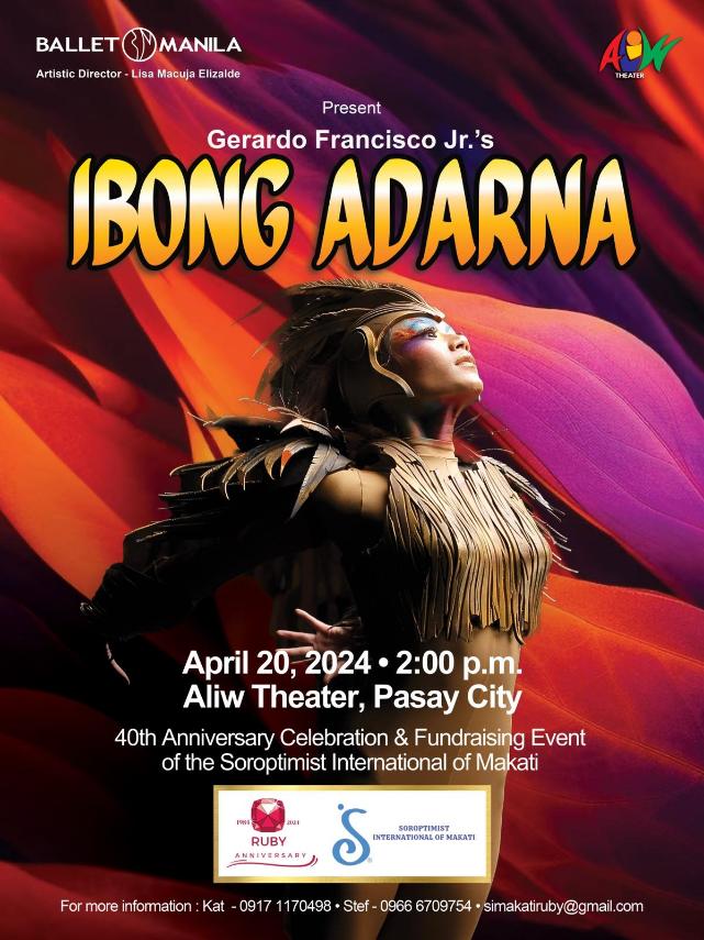 THE BALLET retelling of Gerardo Francisco Jr.’s Ibong Adarna will return for one performance on April 20. Ballet Manila will perform the piece for the 40th anniversary celebration and fundraising event of the Soroptimist International of Makati. For tickets and more information, message Kat at 0917-117-0498 or Stef at 0966-670-9754. The show will be at 2 p.m. at the Aliw Theater, CCP Complex, Pasay City.