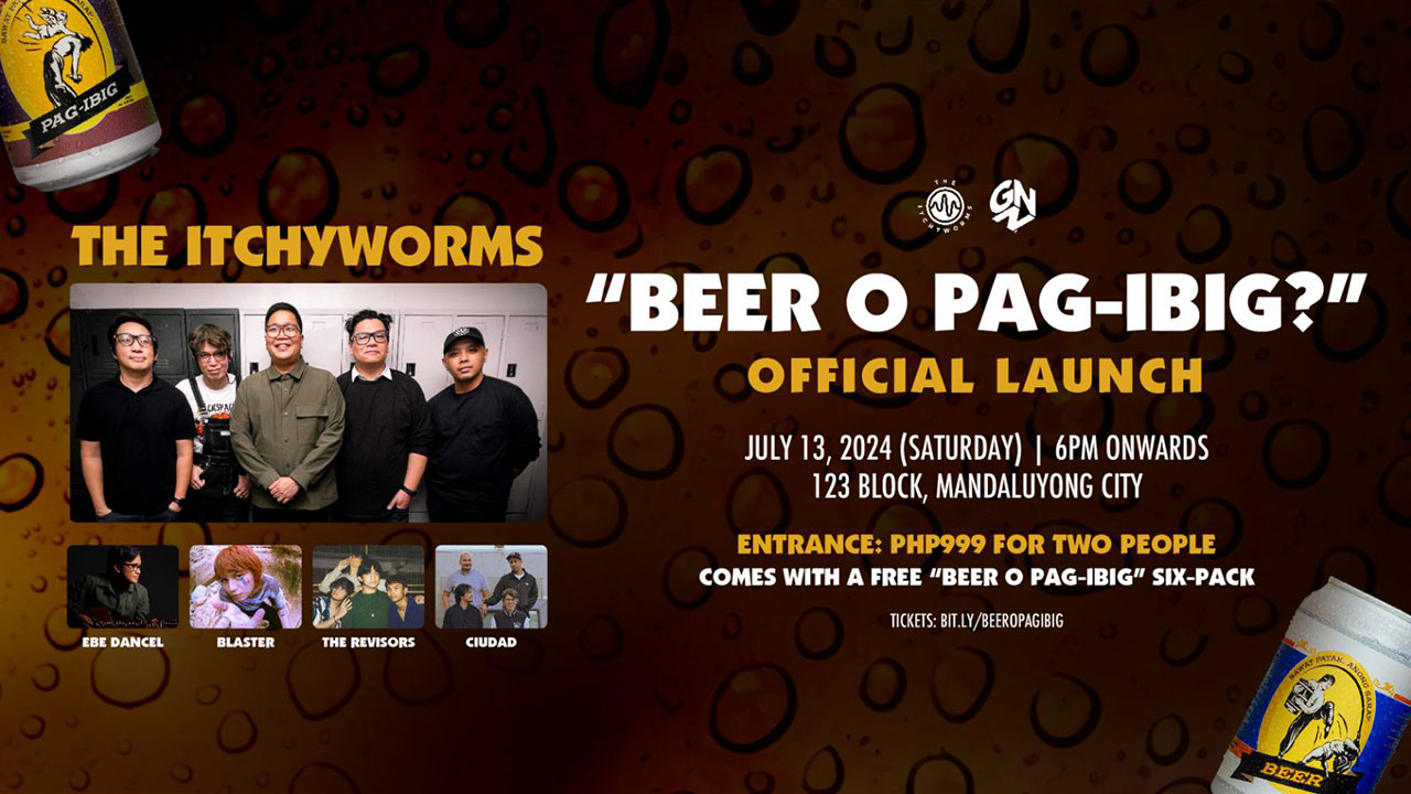 FILIPINO pop-rock icons The Itchyworms are celebrating the release of their own brand of craft beers with a music event that features some of their friends and favorites in the local music scene. “The Itchyworms: Beer o Pag-ibig?” will be graced by Ebe Dancel, Ciudad, Blaster, The Revisors, and The Itchyworms themselves. It takes place at the 123 Block on July 13, 6 p.m. onwards, co-organized by GNN Entertainment Productions. Inspired by the band’s hit “Beer,” the craft beer brand will have two variants: the light and fruity blonde ale “Beer” and the hazy, flowery, bitter-tasting “Pag-ibig.” Entrance to the event is P999 for two people, inclusive of a free six-pack of beer. Early tickets are available via bit.ly/beeropagibig.