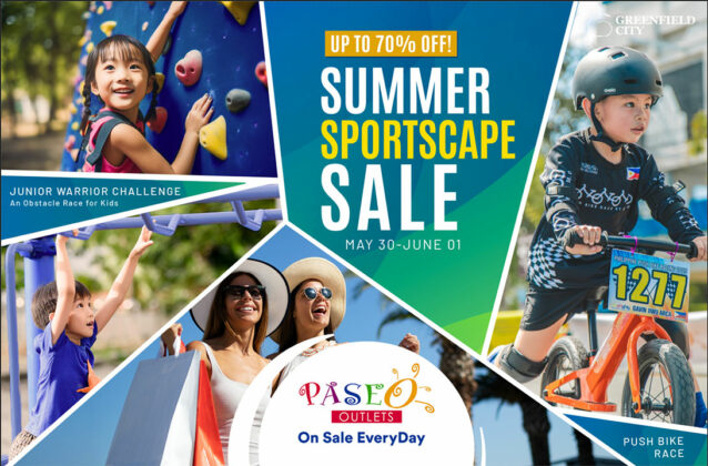 THIS SUMMER, the Paseo Outlets at Greenfield City is reimagining what a family day out can be. From May 30 to June 1, make memories that go beyond shopping with the launch of Sportscape, an outdoor adventure zone for kids, and a three-day summer sale with up to 70% off on top brands. From May 30 to June 1, enjoy up to 70% off across brands including Under Armour, Speedo, Crocs, Oaklet, West Elm, Levi’s, Payless, Lacoste, and other brands. On May 31 and June 1, the Paseo Outlets will become the stage for Sportscape, an outdoor attraction for families. At the heart of Sportscape is the Paseo Outlets Junior Warrior Challenge, an obstacle course designed for kids four to eight years old. Held at the newly launched Paseo Outlets Obstacle Park — now officially accredited by the Philippine Obstacle Sports Federation — for P350, participants get access to the full course and take home a finisher medal. Registration is now open at https://bit.ly/PaseoOutletsOCR2025. For younger kids aged two to four, there’s the Push Bike Race at Plaza Regina. Register and pay the fee of P450 to participate and receive a finisher medal upon completion. Register at https://bit.ly/PaseoOutletsPushBikeRace2025. Families can also try their luck at the game booths scattered around the area — just present a single receipt worth P1,000 to join. There will be a roller skate exhibition at Plaza Regina at 6 p.m. on both May 31 and June 1. Near the obstacle course is the new Rope Art Playground. There’s also the GoKart Adventure for kids and adults with pedal-powered go-karts. Soon, Playtopia will open at Laguna Central — an indoor inflatable playground. Treat the whole family to a break at the Paseo Outlet’s newest dining spots: Zus Coffee, Prima Kantina, or Aidalicious Chicken Inasal. The Paseo Outlets is located along Tagaytay Balibago Road, Greenfield City, Sta. Rosa, Laguna.