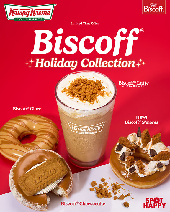 KRISPY KREME Philippines is bringing back the Holiday Biscoff Collection, a festive lineup of donuts and beverages crafted with Biscoff spread. The lineup includes: the new Biscoff S’mores (doughnuts dipped in Biscoff spread, drizzled with torched marshmallow fluff, topped with dark chocolate and Biscoff cookie bits), Biscoff Cheesecake (doughnuts filled with cheesecake kreme, dipped in Biscoff spread, topped with cheesecake powder and a Biscoff cookie), Biscoff Glaze (doughnuts dipped in Lotus Biscoff glaze and drizzled with spread), and the Biscoff Latte (made with Biscoff spread, milk, and an espresso shot, topped with Biscoff kreme and cookie crumbs). The Holiday Biscoff Collection is now available for a limited time only, from Sept. 1 to Oct. 15. Doughnuts start at P70 and are available at all Krispy Kreme stores nationwide, while the Biscoff Latte starts at P185 and can be enjoyed at select branches. Customers can grab them via dine-in, take-out, drive-through, or delivery through https://now.krispykreme.com.ph, the Metro Manila Hotline (888-79000), GrabFood, foodpanda, Pick.A.Roo, OrderMo, and Groover.
