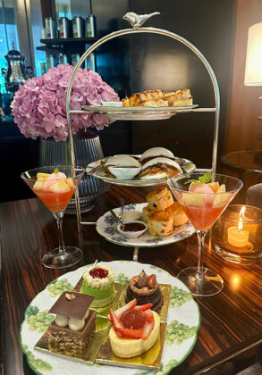 The choice to serve loose tea leaves over tea bags enhances the tea drinking experience with the more nuanced flavors of whole tea leaves. Besides the English breakfast, summer gold Darjeeling, Earl Grey, Ceylon decaffeinated, jasmine gold, fancy sench, and milky oolong, there are herbal infusions of peppermint, pure chamomile, rooibos balance, red fruit, and lemon grass. Coffee drinkers are not neglected and can choose brewed, americano, flat white, cappuccino, or cafè latte. The choice of beverage expands with a light rosé. Fruity and refreshing, the chilled wine enhances sweet and savory bites.