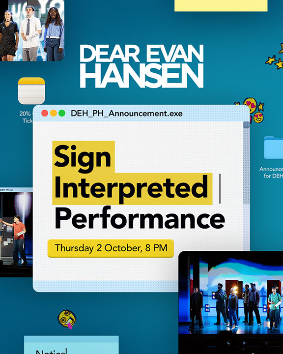 GMG PRODUCTIONS has announced that a sign language-interpreted performance of the award-winning musical Dear Evan Hansen will be mounted during its Manila run. In collaboration with the Filipino Sign Language (FSL) Deaf consultants and interpreters of the College of Saint Benilde, the upcoming Oct. 2 show of Dear Evan Hansen will be accessible to the Deaf community. The musical will be interpreted in FSL live by Benilde’s FSL interpreters. The musical runs until Oct. 5 at The Theatre at Solaire, with tickets exclusively available via TicketWorld.