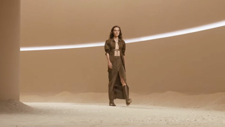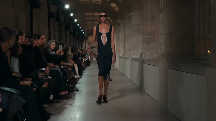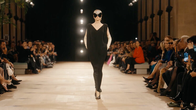 The show, held in the Tuileries Gardens, started with a fast-paced film, showing images from the label’s past but styled like a black-and-white horror film.
