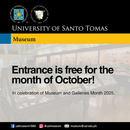 IN CELEBRATION of Museum and Galleries Month 2025, the University of Santo Tomas (UST) Museum is offering free admission for the whole month of October. Thomasians and non-Thomasians are free to drop by on weekdays from 10 a.m. to 4:30 p.m. The UST Museum, formally established in 1869, is considered the oldest museum in the Philippines. It was originally located in Intramuros but was transferred to the UST Main Building when it was built in 1928. It houses diverse collections including coins, medals, Philippine ethnographic artifacts, natural history specimens (especially shells and fauna), religious images, memorabilia, and visual arts spanning from the 16th century to contemporary times.