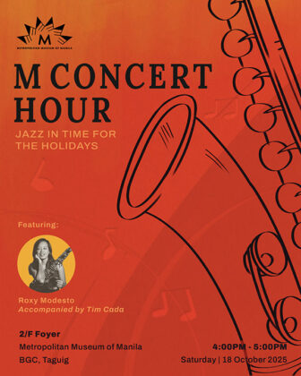 TO RING in the holiday season, the Metropolitan Museum of Manila (The M) is holding a jazz concert, The M Concert Hour: Jazz in Time for the Holidays, on Oct. 18. It will feature saxophonist Roxy Modesto, accompanied by guitarist Tim Cada. Their setlist will include soulful tunes as a warm-up for the holidays. The museum’s all-access pass, priced at P550, is good for the concert as well as access to the exhibitions on view. It starts at 4 p.m. at the second floor foyer of The M in Bonifacio Global City, Taguig.