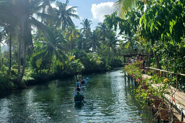 You wouldn’t think that a random bridge on the roadside with a smattering of souvenir stalls across it would have a small path leading down to a serene riverside. Once there, the surroundings are surprisingly beautiful — lush mangroves lining a clean, calm river, with tourists ferried up and down on its gentle currents.