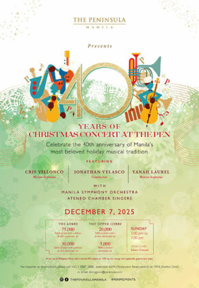 FROM holiday carols to music from film, Disney classics, and light opera, The Peninsula Manila marks the 40th anniversary of its annual festive season concert with the Manila Symphony Orchestra, mezzo sopranos Cris Villonco and Yanah Laurel, and the 50-voice Ateneo Chamber Singers under the baton of Jonathan Velasco. The concert will be held on Dec. 7, from 5 to 7 p.m. at The Lobby. The first part of the concert will feature a mix of Barry White, movie musicals, light opera, Disney, and a well-loved Filipino pop classic. As tradition dictates, the second part will be filled with the familiar sounds of Christmas including the “Hallelujah Chorus” from Handel’s Messiah. Table reservations at The Lobby are available at P75,000 with a set deluxe festive merienda menu for 10. Tables for four are available at P30,000 with a set deluxe festive merienda menu. The Upper Lobby seating is available at P20,000 for tables of four with a set festive merienda menu. For inquiries on the Christmas Concert at The Pen 2025, call 8887-2888, extension 7410 (Festive Desk), e-mail diningpmn@peninsula.com, or visit the website peninsula.com.