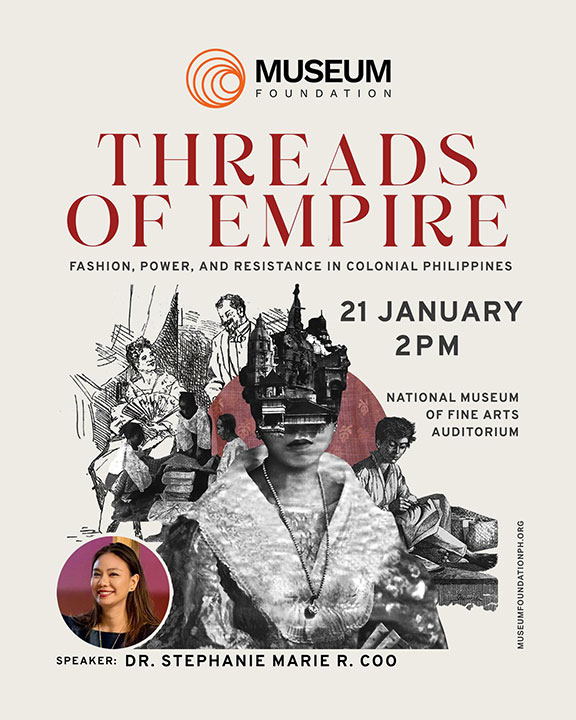 DR. STEPHANIE COO is set to discuss how clothing becomes a tool of power and resistance in colonial Philippines in the talk “Threads of Empire: Fashion, Power, and Resistance in Colonial Philippines.” The event is open to all curious and interested in Philippine material culture, craftsmanship, and the living histories embedded in art and clothing design. It will take place on Jan. 21, 2 p.m., at the National Museum of Fine Arts’ auditorium. Pre-registration is required through https://forms.gle/QBXQaYwWB1waXoFu9.