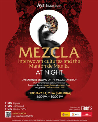 For Valentine’s, enjoy Mezcla At Night, an after-hours viewing of two exhibits — Mezcla: Interwoven Cultures and Mantón de Manila — with live flamenco performances. Terry’s Bistro brings Spanish flavors with complimentary savory bites for guests, and light drinks available for purchase. Tickets cost between P1,040 for seniors and PWDs, to P1,300. The event runs on Valentine’s Day from 6 to 10 p.m.