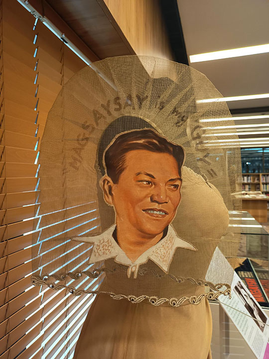 A white Ramon Valera terno in the exhibit, he pointed out, was worn by her several times at the Ramon Magsaysay Awards ceremonies. Meanwhile, a poignant terno stands out: one not made of the fine silks she wore in office. She wore it during the campaign, with her husband’s face and slogan (“Magsaysay is my Guy”) emblazoned on the sleeves. Mr. Torres says that it had a tag: “Lina’s,” possibly an off-the-rack or made-to-order item from a lesser-known designer.