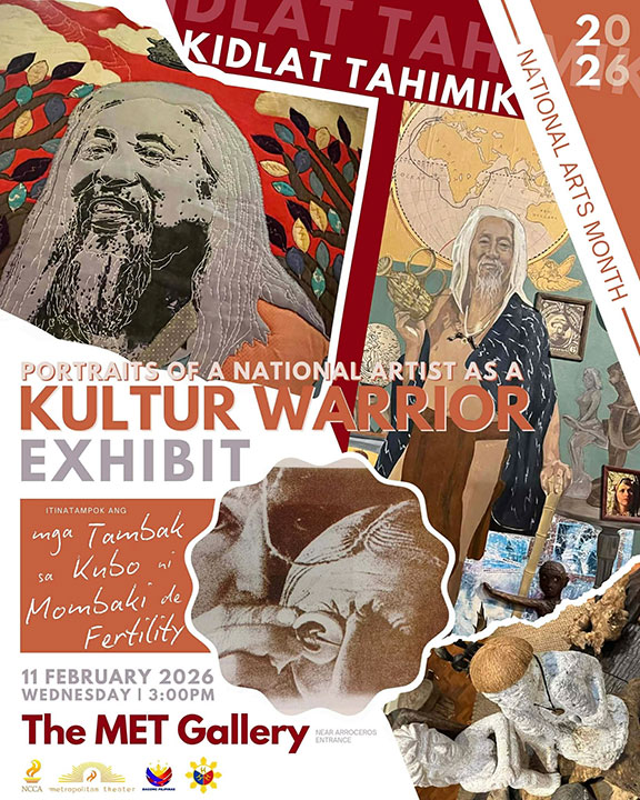 THE Metropolitan Theater (MET), in collaboration with the Order of National Artists, is presenting Portraits of a National Artist as Kultur Warrior, featuring works inspired by and dedicated to National Artist Kidlat Tahimik. The exhibition is the first installment of the MET’s National Artists Exhibit Series for the year and pays tribute to the life, advocacy, and enduring cultural influence of Kidlat Tahimik, as a filmmaker, storyteller, and passionate champion of indigenous identity and decolonization. It traces a 50-year visual narrative through portraits created by various artists, such as his wife, Katrin de Guia; cartoonist Nonoy Marcelo; cinematographer Boy Yñiguez; Ifugao carver Chris Atiwon; documentary shots by Tommy Hafalla; and even playful sketches by his grandchildren in 2025. It is on view until Feb. 28 at the Metropolitan Theater Gallery.