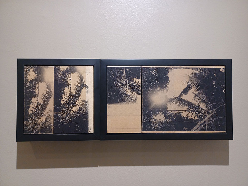 Eunice Sanchez’s ink-on-canvas images speak to fragments of memory, of mental pictures taken during a search for meaning. Further into the gallery, one can find a mixed-media installation by Luigi Singson that evokes a feed of images of demarcated spaces.