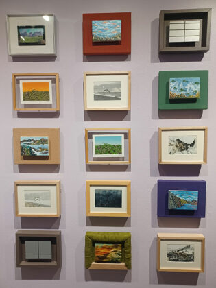 In one room, painted landscapes and collaged canvases hang together, presenting different facets of Carina Santos’ body of work. In another, the walls are adorned with postcards by 28 artists depicting varying sceneries to immerse in, curated by Nicole Tee, who in turn has her own exhibit where she makes use of thread to add texture to foliage in photos and recall the grandeur of nature.