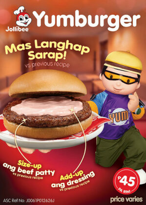 THE Yumburger now has a bigger beef patty and more dressing while still priced at P45. The new-ish burger was launched in transport hubs and shopping centers across the Philippines. Jollibee gave away 2,000 free Yumburgers at One Ayala in Makati, The Infinity in Pampanga, Paseo de Santa Rosa in Laguna, Parkmall in Cebu, and Rizal Park in Davao as, plus 4,000 vouchers to try an exclusive combo in stores. For updates visit www.jollibee.com.ph, to order go to https://order.jollibee.com.