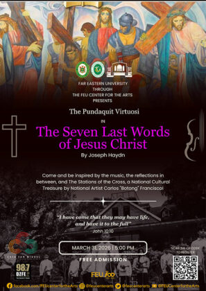 FAR EASTERN UNIVERSITY (FEU), through the FEU Center for the Arts, is presenting the Pundaquit Virtuosi from Zambales in Haydn’s The Seven Last Words of Jesus Christ on March 31 at the FEU Chapel. A Holy Week presentation, it will include reflections between musical passages while surrounded by the chapel’s Stations of the Cross, a National Cultural Treasure created by National Artist Carlos “Botong” Francisco. This special Lenten event is presented in partnership with the FEU Campus Ministry. It is free to all visitors on March 31, 5 p.m., at the FEU Chapel. Limited seats are available so pre-registration is needed via https://forms.office.com/r/Tb3m5a9W49.