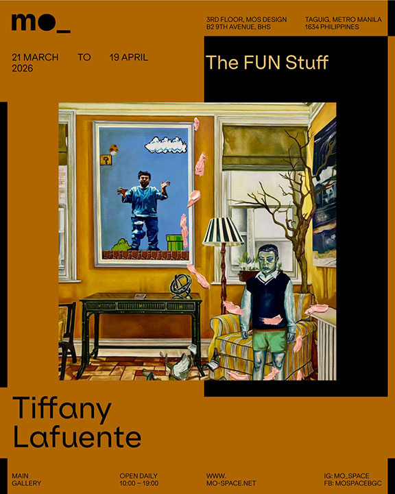 TWO EXHIBITIONS are on view at MO_Space this month. In The FUN Stuff, Tiffany Lafuente cracks the veneer of everyday life, poking fun at mundane rituals as well as the domestic objects that allow us to fashion identities and shape how others perceive us. Meanwhile, in /hour, Maricar Tolentino sets down what she has previously practiced, the density of pigments and insistence of imagery, and picks up time and repetition. In white-on-white thread, she accounts for what labor demands and what it cannot, in hours, days, weeks, and months. The exhibitions run until April 19 at MO_Space, Bonifacio High Street, BGC, Taguig.