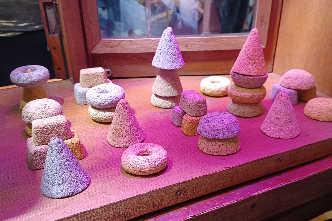 Datirati by Niño Tayao revisits childhood play through a stacking toy made from agricultural waste. Using organic materials like rice husks, corn husks, various seeds, and starch, his series of toys invites people to contemplate the life cycle of objects.