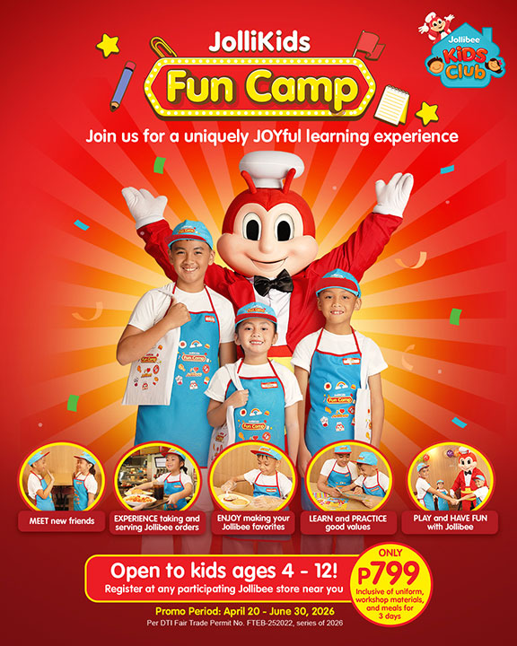 JOLLIBEE is offering hands-on learning this summer break with JolliKids Fun Camp. Children ages four to 12 are offered guided activities that blend play, learning, and social interaction. It will take place across select stores nationwide over three days, spanning bite-sized sessions lasting two to three hours. The camp has schedules from April 20 to June 30, with registration currently ongoing.