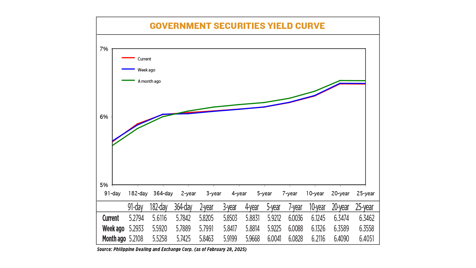 “The Bureau of the Treasury is set to offer a five-year bond at the primary auction, with yields expected to clear within the 5.95%–6.05% range. Market participants will closely watch the auction results to gauge demand for mid-tenor bonds ahead of the BSP’s anticipated rate cut in April.” — with Reuters