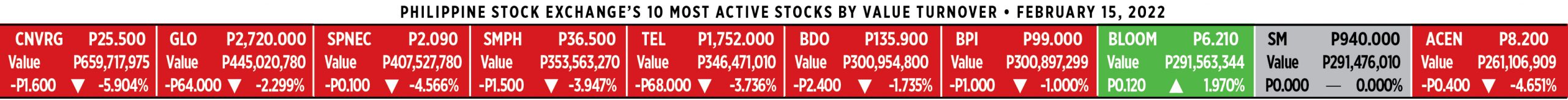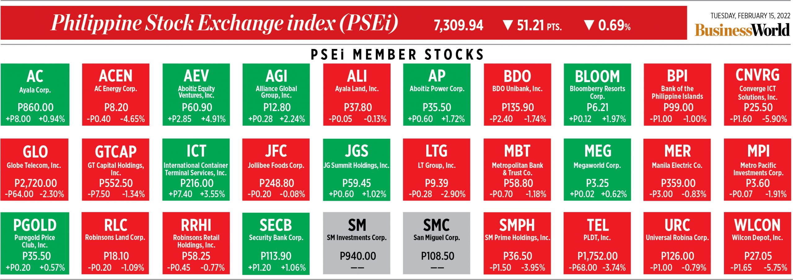 Home Corporate How PSEi member stocks performed — February 15, 2022 Corporate How PSEi member stocks performed — February 15, 2022 February 16, 2022 | 12:00 am Here’s a quick glance at how PSEi stocks fared on Tuesday, February 15, 2022.