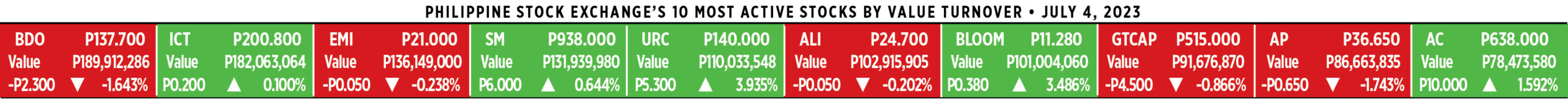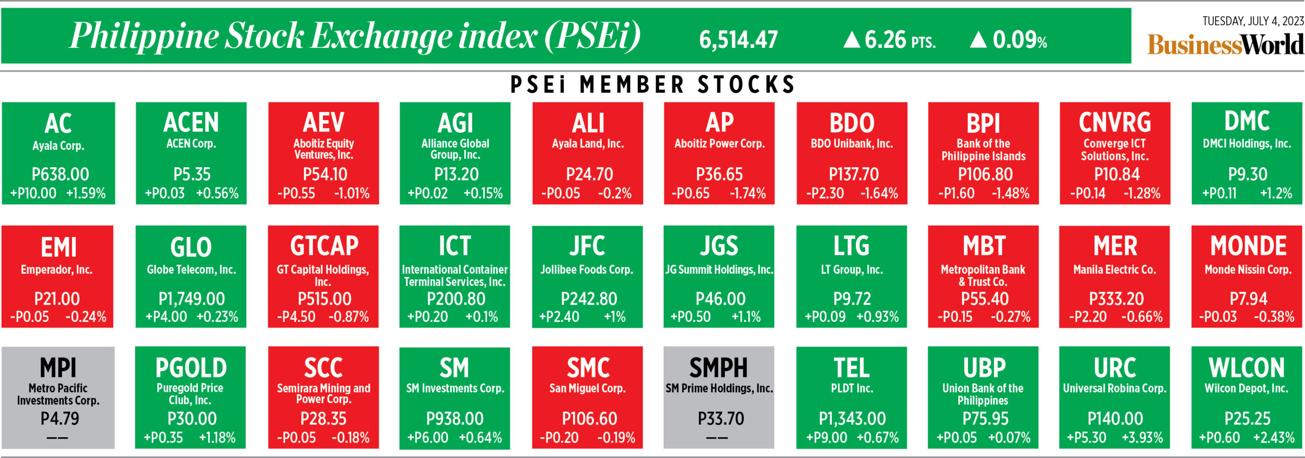 Home Corporate How PSEi member stocks performed — July 4, 2023 Corporate How PSEi member stocks performed — July 4, 2023 July 5, 2023 | 12:00 am Here’s a quick glance at how PSEi stocks fared on Tuesday, July 4, 2023.