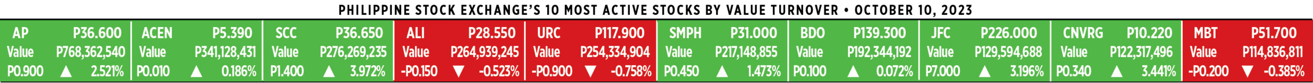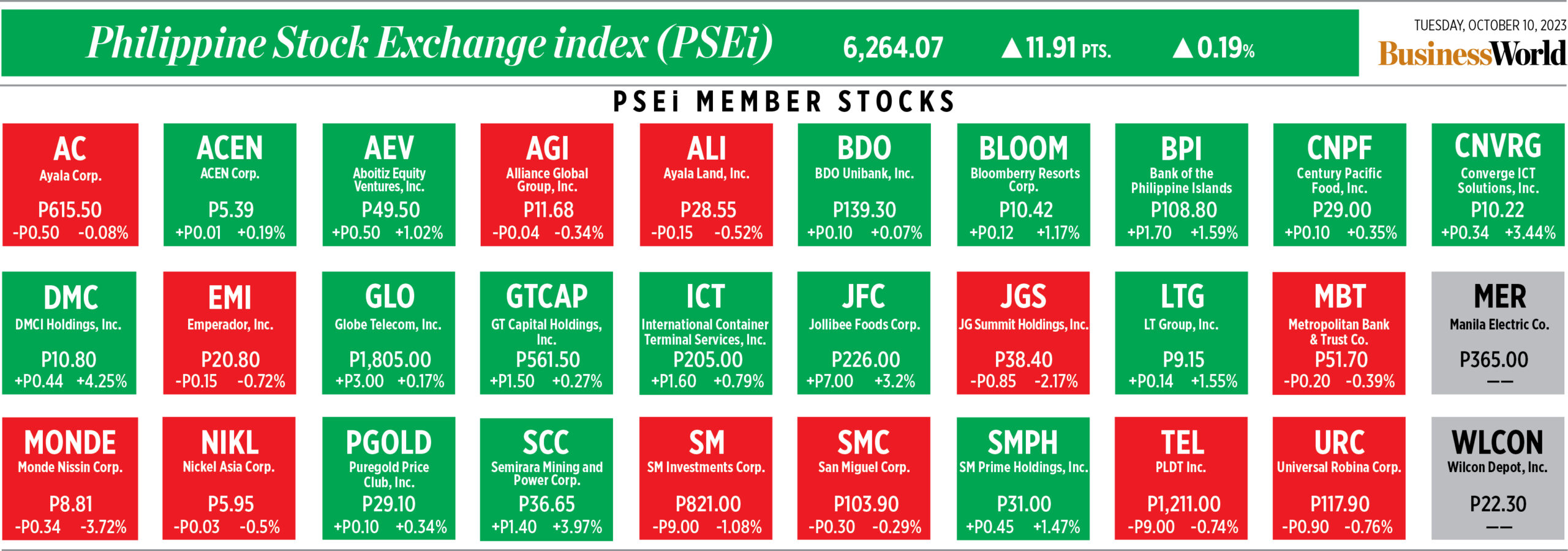 Home Corporate How PSEi member stocks performed — October 10, 2023 Corporate How PSEi member stocks performed — October 10, 2023 October 11, 2023 | 12:00 am Here’s a quick glance at how PSEi stocks fared on Tuesday, October 10, 2023.
