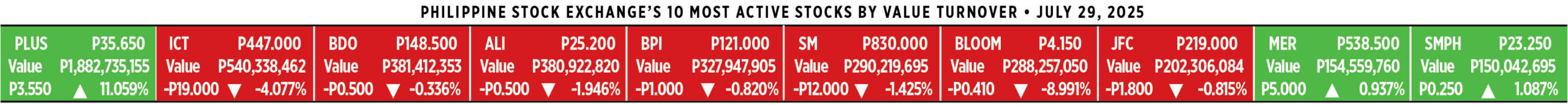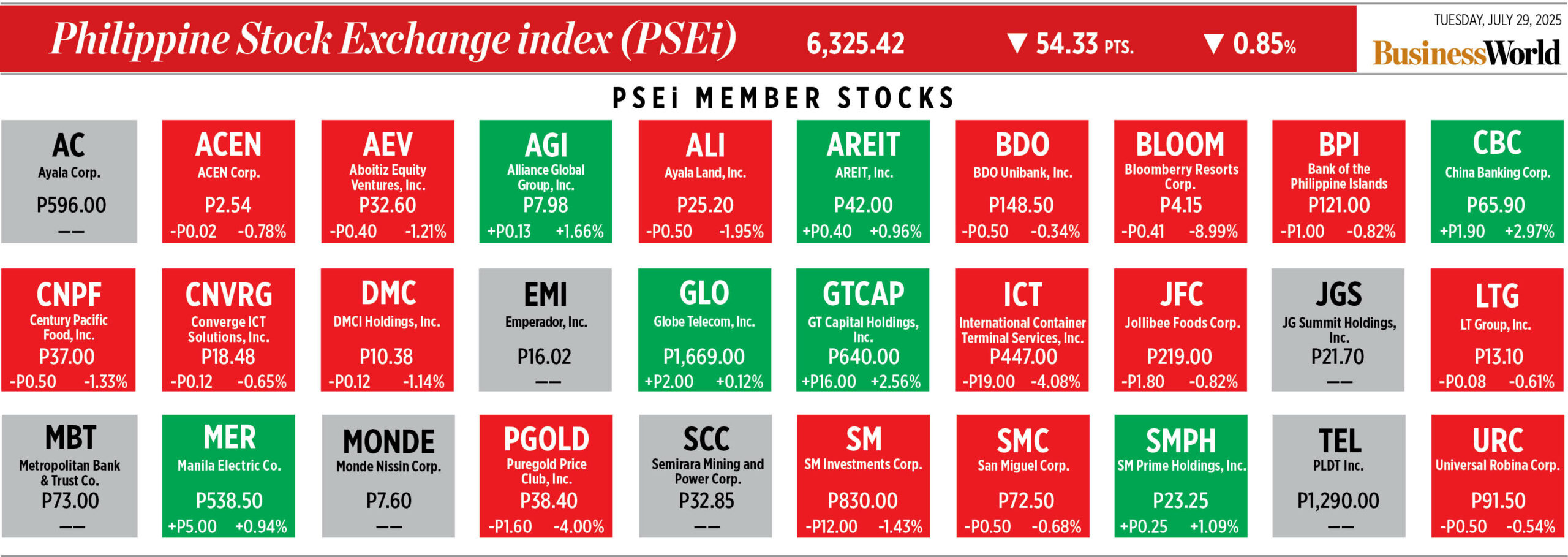 Home Corporate How PSEi member stocks performed — July 29, 2025 Corporate How PSEi member stocks performed — July 29, 2025 July 30, 2025 | 12:00 am Here’s a quick glance at how PSEi stocks fared on Tuesday, July 29, 2025.