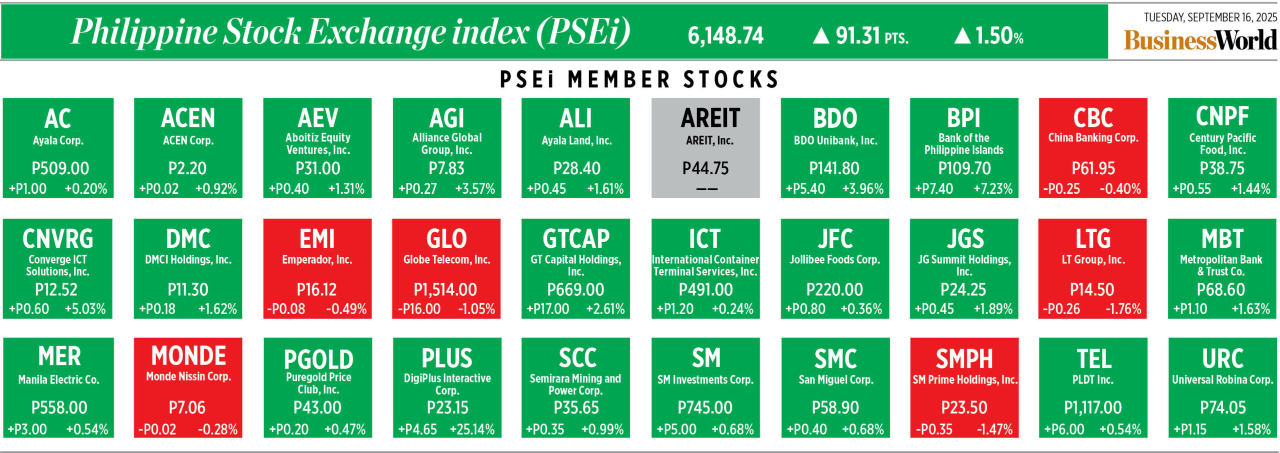 Home Corporate How PSEi member stocks performed — September 16, 2025 Corporate How PSEi member stocks performed — September 16, 2025 September 17, 2025 | 12:00 am Here’s a quick glance at how PSEi stocks fared on Tuesday, September 16, 2025.