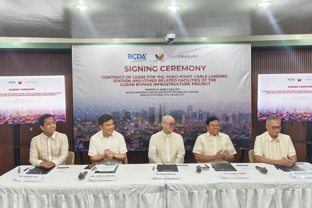 The Bases Conversion and Development Authority (BCDA) and InfiniVAN Inc., a Japanese-Filipino telco provider, on Wednesday signed a leasing agreement allowing the latter to use the Luzon Bypass Infrastructure (LBI), which is poised to boost the country’s connectivity and attract more foreign investors.