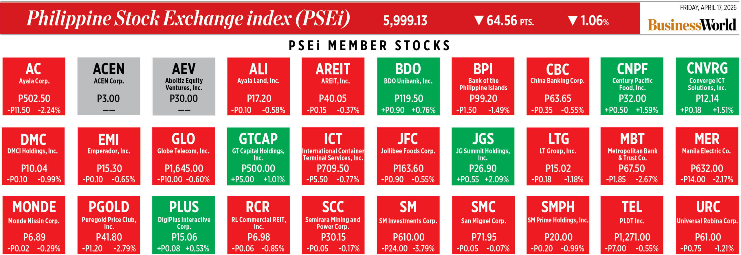 Home Corporate How PSEi member stocks performed — April 17, 2026