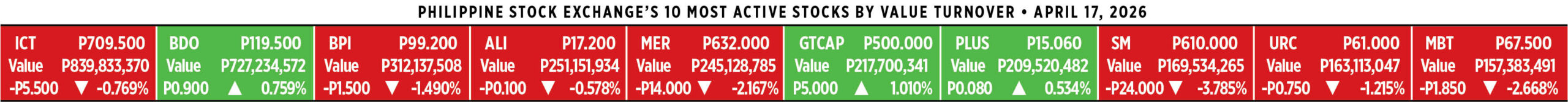 Here’s a quick glance at how PSEi stocks fared on Friday, April 17, 2026.