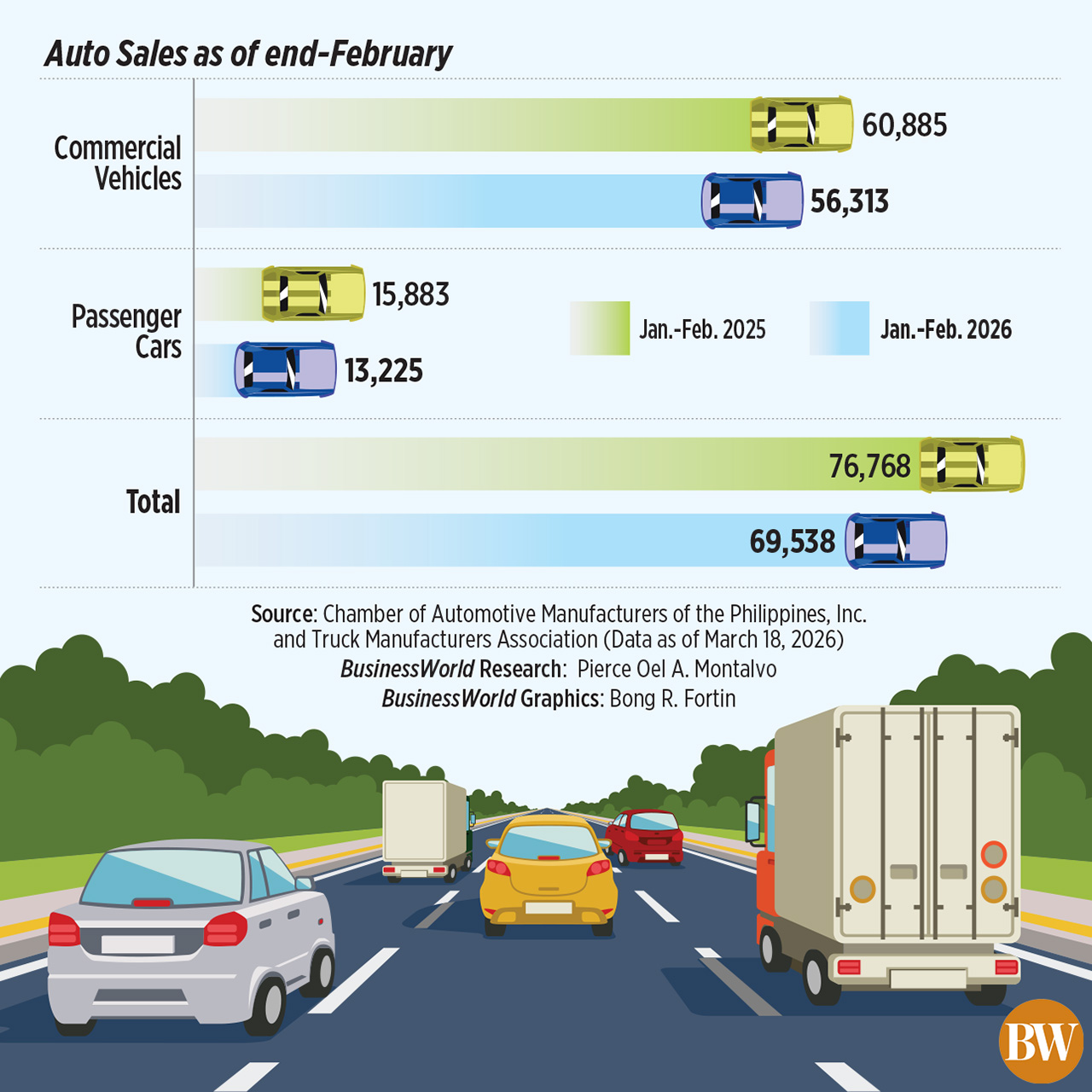 PHILIPPINE automotive sales dropped year on year in February as demand for passenger cars and commercial vehicles slumped, according to a joint report by the Chamber of Automotive Manufacturers of the Philippines, Inc. (CAMPI) and the Truck Manufacturers Association (TMA). Read the full story.