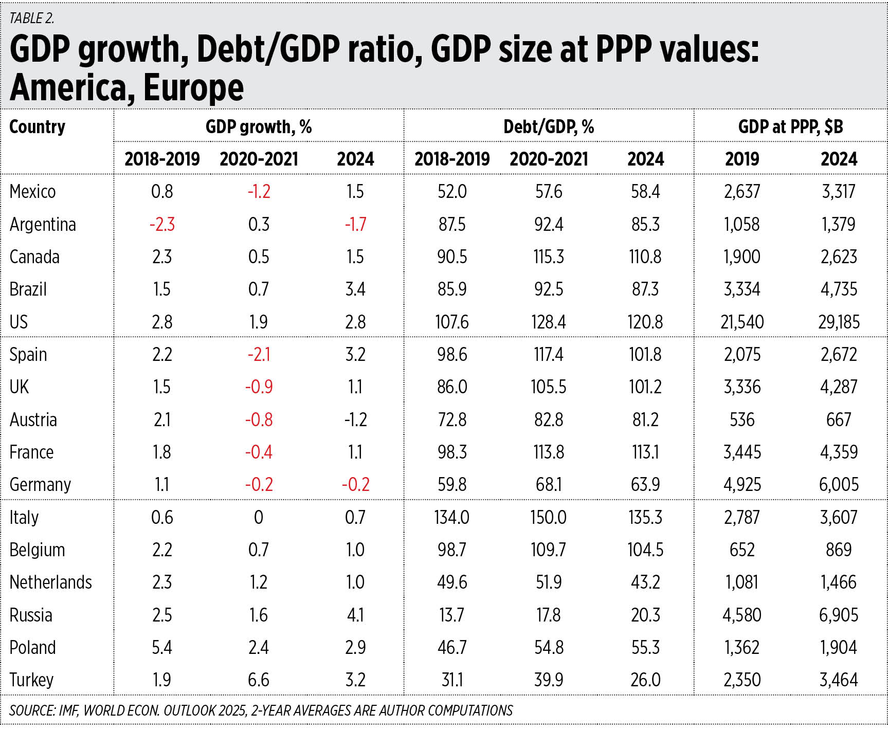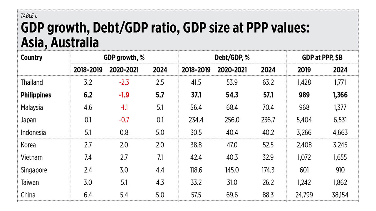 For this exercise, I have compared three indicators: a.) using economic growth in 2018-2019 as the baseline, growth or contraction in 2020-2021, then growth in 2024; b.) public debt/GDP ratio same periods; and, c.) GDP size at purchasing power parity (PPP) values in 2019 and 2024.