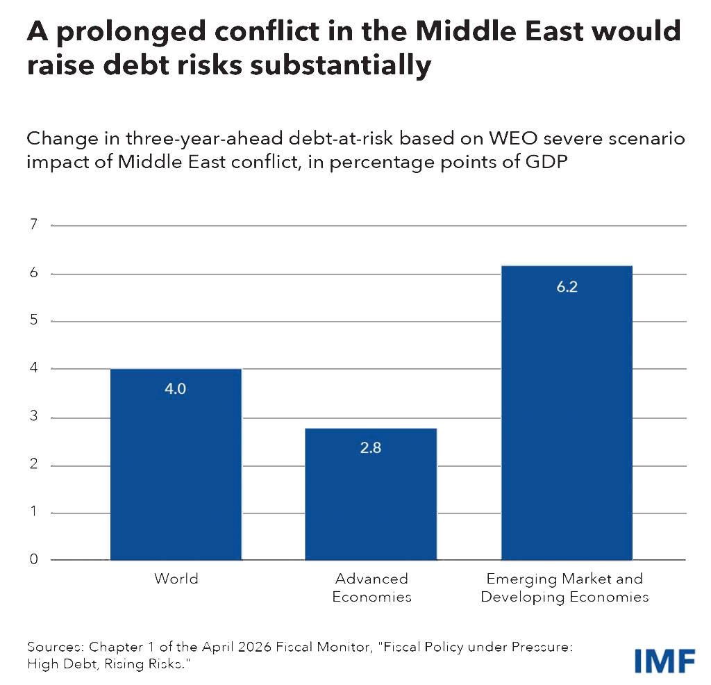 There is also the danger of policy complacency. In a severe scenario where oil prices surge and financial conditions tighten, the IMF estimates that debt-at-risk could exceed 120% of GDP, especially in emerging markets.