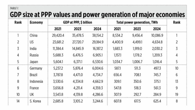 So, I start by comparing the power generation of major economies with large gross domestic product (GDP) size at purchasing power parity (PPP) values, which comes from the IMF World Economic Outlook (WEO) 2025 database.