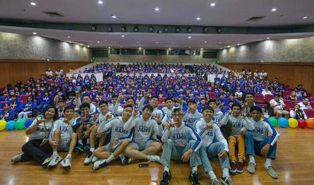 A group of freshman students pose for the camera during their student orientation at the APC Auditorium as the School Year 2024-2025 starts.