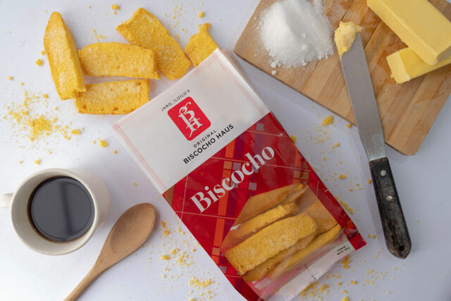 The brand’s signature product, Bischoco — day-old bread toasted with butter and sugar — remains the top seller.