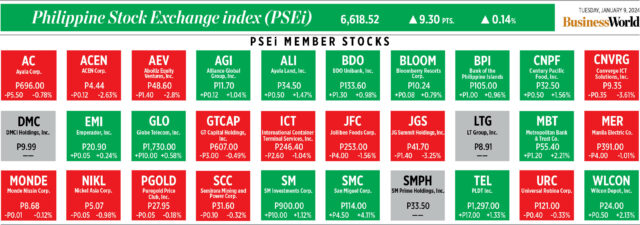 How PSEi member stocks performed — January 9, 2024
