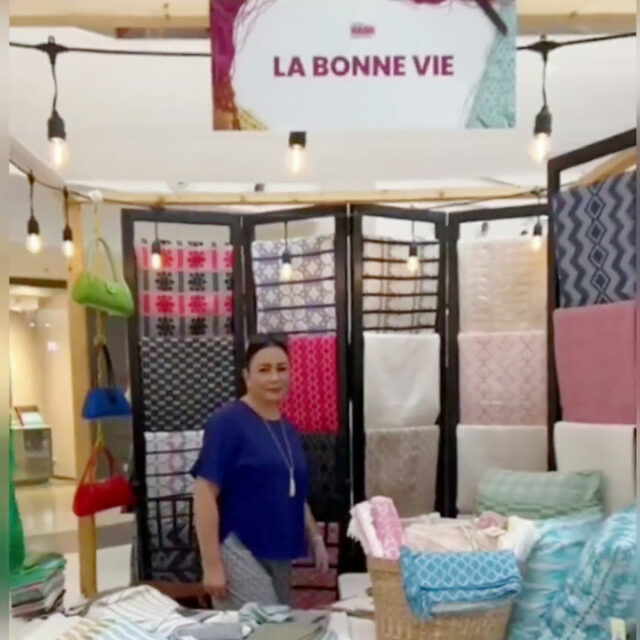 At this month’s Likhang Habi Fair in Glorietta, we caught up with Ms. Bonnevie manning the booth of her indigenous textiles brand, La Bonne Vie (“the good life” in French, just like the actress’ last name). The brand’s roots are a project of her third husband, former Ilocos Sur governor, vice-governor, and now Department of Agriculture undersecretary Deogracias Victor Savellano. “It’s not like I intentionally entered into indigenous textiles. This thing came to me as a surprise, actually,” she told BusinessWorld during an interview on Oct. 15.