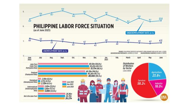 The labor force size in June increased by 741,000 from the previous month, reaching 51.17 million, Philippine Statistics Authority data released on Wednesday showed.