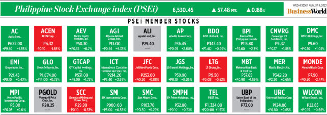 “The local bourse gained by 57.48 points to 6,530.45 as the Philippines’ employment rate remained strong in June, despite inching down month-on-month,” Philstocks Financial, Inc. Research Analyst Claire T. Alviar said.