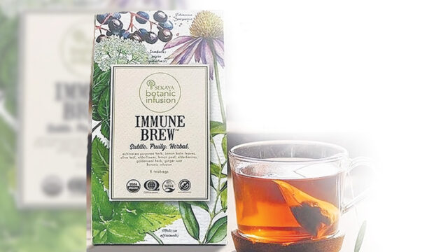 Immune Brew, meanwhile, had Echinacea, lemon peel, lemon balm, elderberry, elderflower, goldenseal, ginger, and olive leaf. She said that they reduce the impact of the common cold and flu and boost the immune system. Echinacea, goldenseal, and ginger in particular are immunostimulants; while the three ingredients plus lemon balm, lemon peel, and olive leaf serve as antimicrobials.