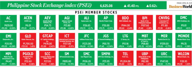 Here’s a quick glance at how PSEi stocks fared on Friday, April 28, 2023.