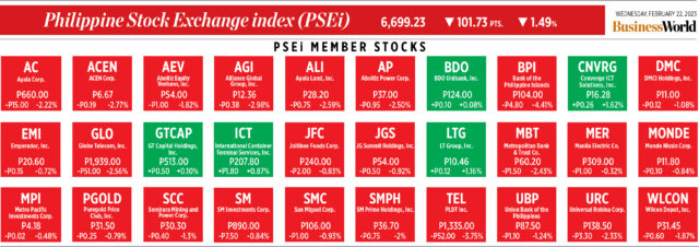How PSEi member stocks performed — February 22, 2023