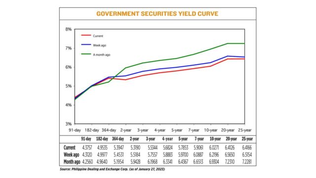 “The upcoming 13-year Treasury bond auction yield could range at the 6%-6.2% levels, as the latest 12-year PHP BVAL yield stood at 6.1205% as of Jan. 27, 2023,” he added.