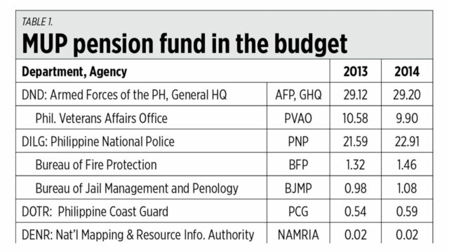 1. Government civilian personnel contribute for their future pension, MUP do not. Government doctors, nurses, teachers, engineers, agriculturists, etc. Accept the additional deductions from their monthly pay that go to the Government Service Insurance System (GSIS), the MUP do not. Taxpayers pay for active service MUP salaries and other compensation, then when they retire, taxpayers again have to pay for their pension — and the scheme is egregious.