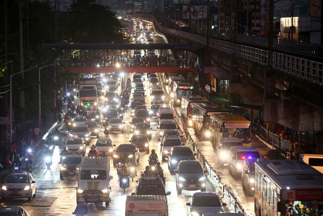 Heavy traffic is seen along the southbound lane of EDSA in Quezon City, April 18. — PHILIPPINE STAR/ MIGUEL DE GUZMAN